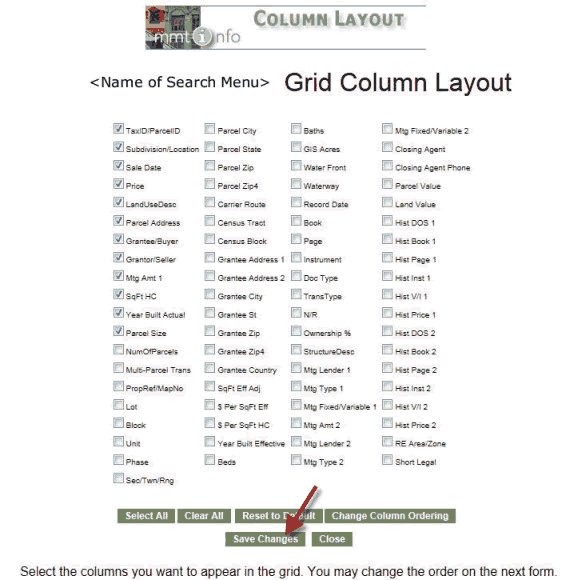 | Column layout is used to add, change or delete data columns that appear in Grid-View. You can also order in which the data columns appear. By default, only some of the available data columns display in Grid-View and are indicated with a check mark. Once you make all your changes, you must select Save Changes. |